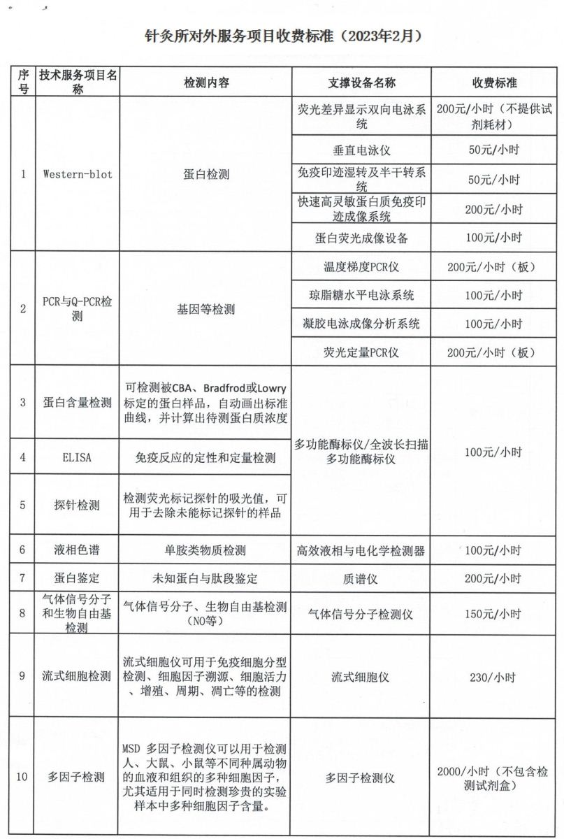 中国中医科学院针灸研究所2023年实验技术服务项目收费标准公告